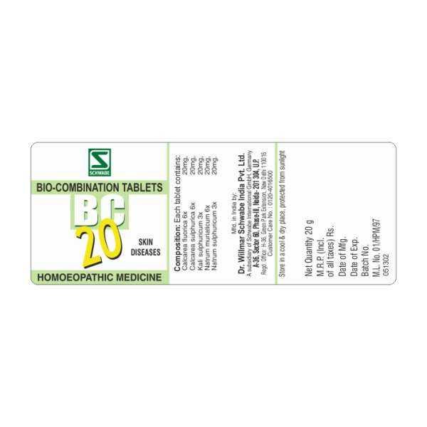Dr Willmar Schwabe India Bio-Combination 20 Tablet treats the skin that becomes dry and cracked, soles and palms, chaps and cracks become very sensitive. Scar tissue are adhesions after operations. Fissures or cracks in the palms of the hands, or hard skin fistulous ulcers secreting thick yellow pus. It is beneficial to treat eczema caused due to uterine disorders.