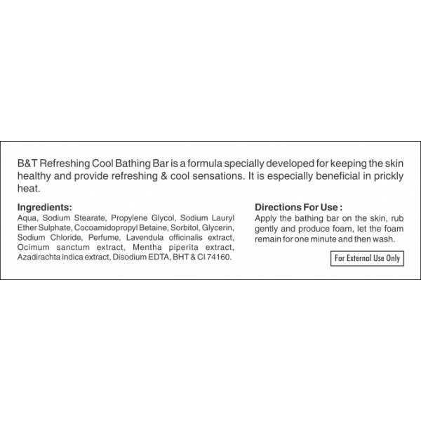 B&T Refreshing Cool Bathing Bar is a formula specially developed for keeping the skin healthy and provide refreshing &cool sensations. It is especially beneficial in prickly heat.