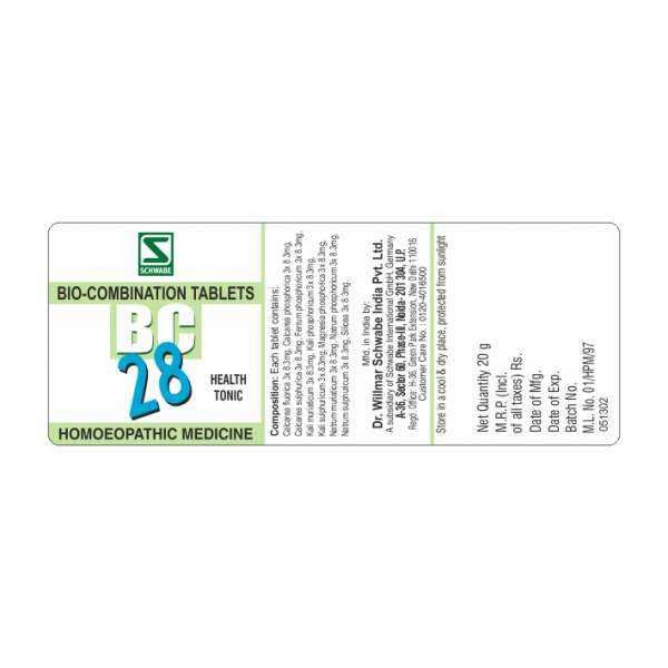 Schwabe Biocombination No. 28 Health Promotion Tablet contains the twelve Tissue Remedies found in the human organism. They are of great help for those suffering from consumption and other debilitating diseases in convalescence from fever pneumonia diarrhea etc. as they help strengthen the system by supplying tissue with essential nutrients. Debilitated and elderly people can take them as a tonic after meals. Continuous use of these Tablets will prevent disease.